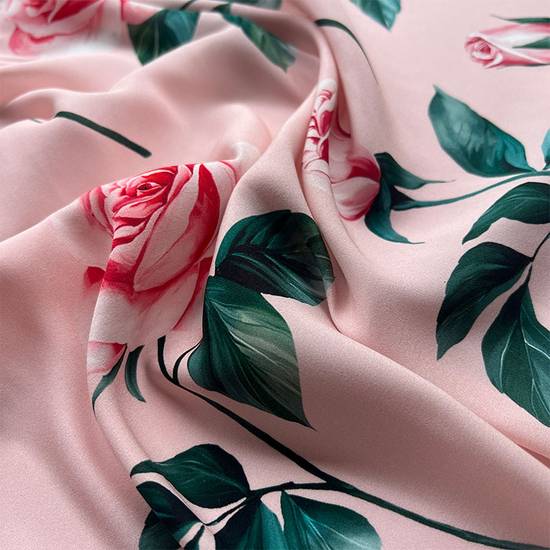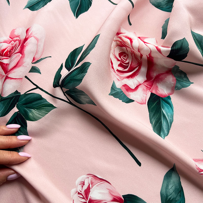 Комментарий стилиста: принт в фирменной эстетике D&G — крупные розы на нежно-пудровом фоне с глубокими зелёными акцентами. Этот шелк — о чувственности и итальянской романтике. Крупная роза в духе D&G эффектно работает в лаконичном крое: платье-футляр, платье на широких бретелях, корсетный силуэт, платье-комбинация, юбка-карандаш, элегантный топ, особый акцент на брючный костюм свободного кроя. Стрейч добавляет посадке безупречность, а шёлковая основа обеспечивает благородное движение ткани. Идеально сочетается с однотонным жакетом в оттенке фуксии, молочном или изумрудном цвете. Образ получается выразительным, но утончённым — для коктейля, летнего мероприятия или курортной коллекции