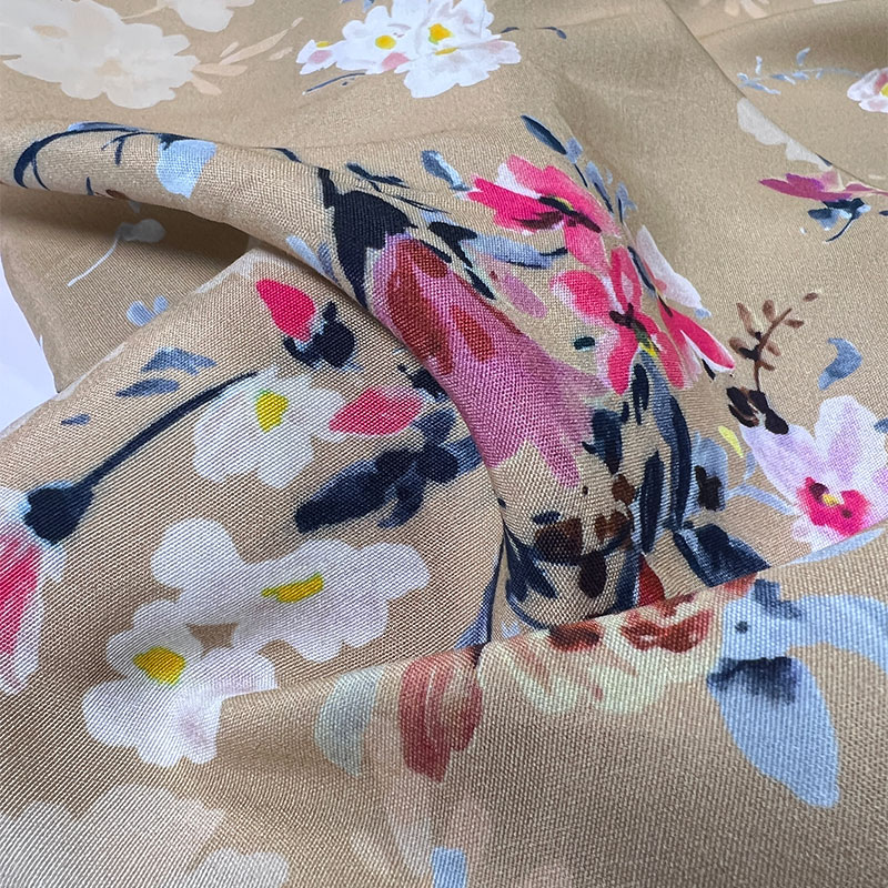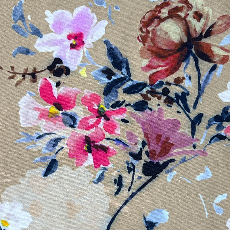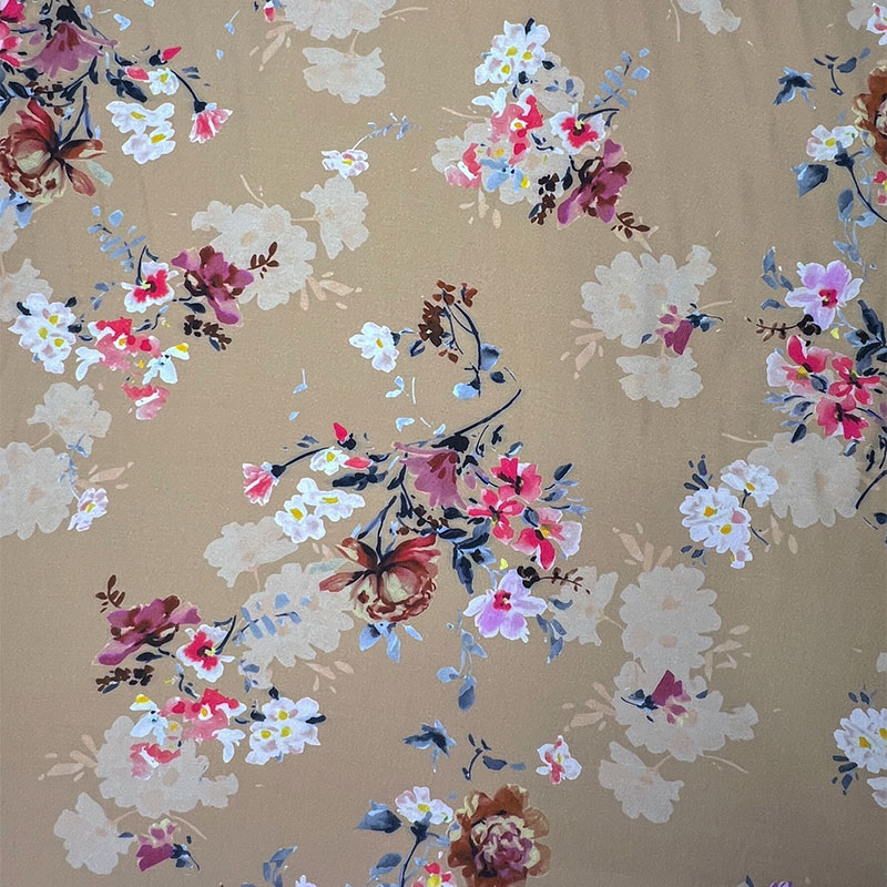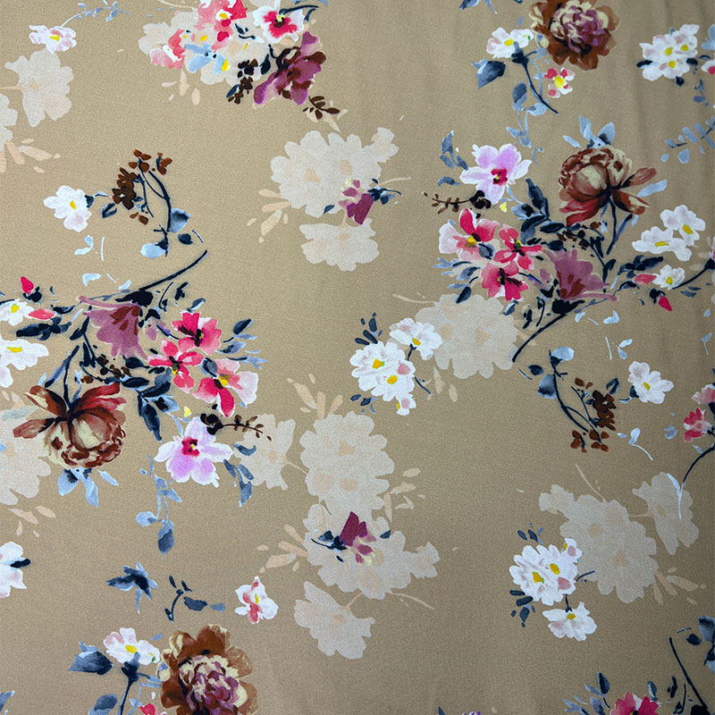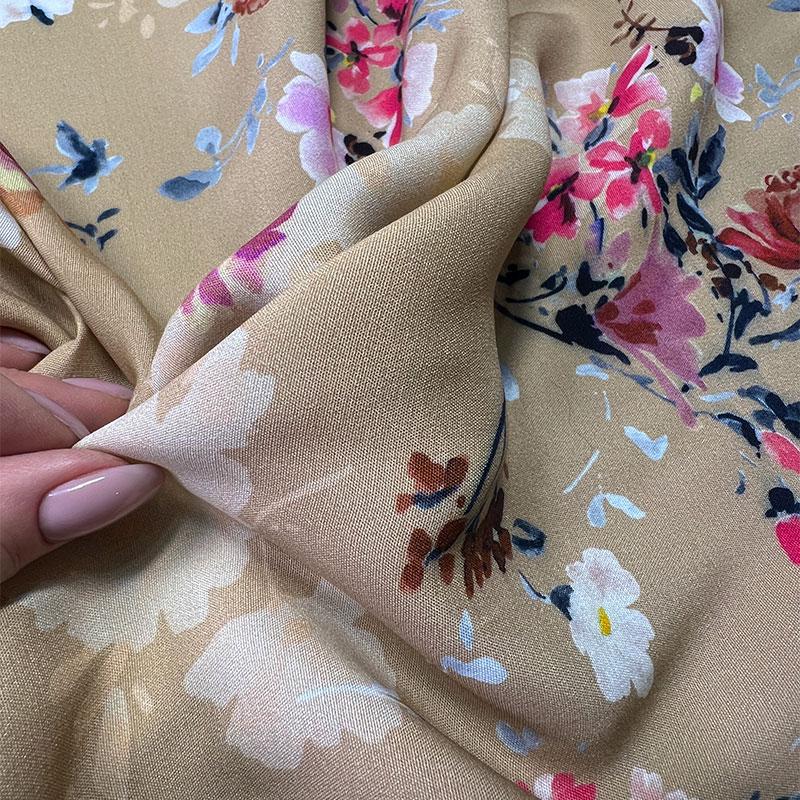 Комментарий стилиста: изделия из штапеля доставляют большое удовольствие в носке, ткань приятна к телу и очень комфортна в любое время года, а особенно летом. Обратите внимание на эффектные оттенки принта - основной приятный теплый бежевый, сопутствующие розовый, серо-голубой, а присутствие белого - освежает композицию. Комбинируйте с соответствующими тканями однотонных оттенков из коттона, вискозы, с белым денимом. Приветствуется отделка кружевами. Жемчужные пуговицы украсят изделие!
