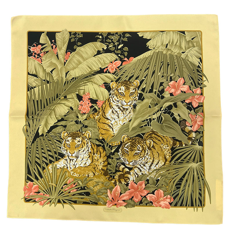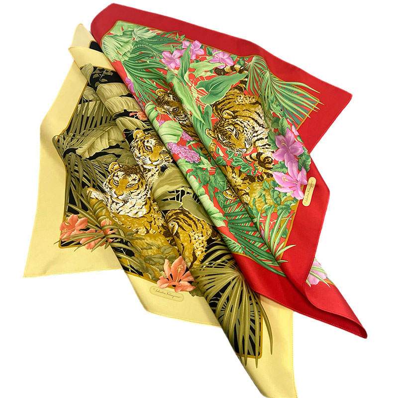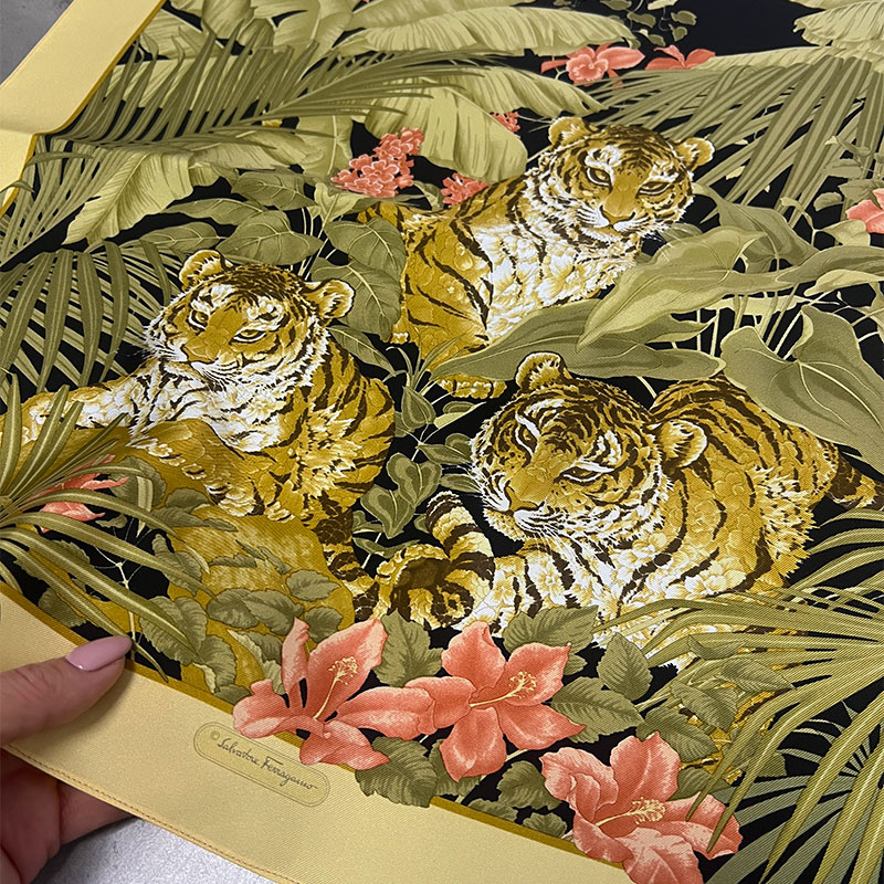Хустка з натурального шовку твилового плетіння, що не вимагає обробки, розмір 48 см х 48 см, SALVATORE FERRAGAMO